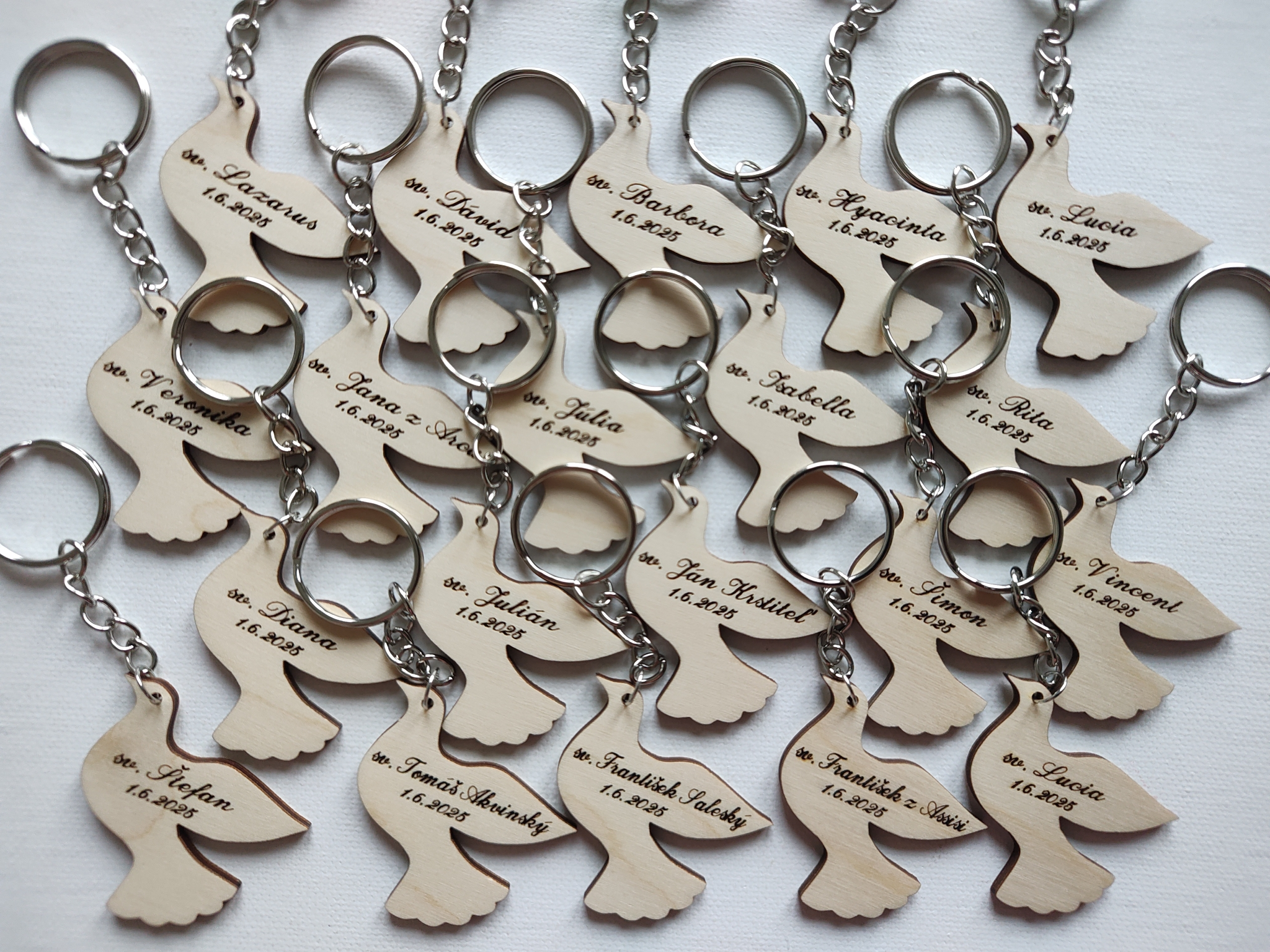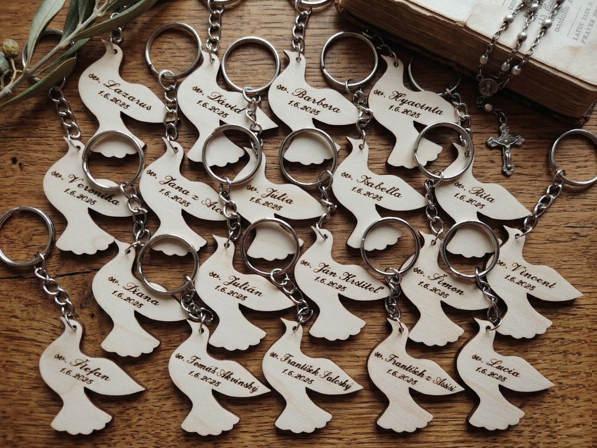 Drevená kľúčenka Holubica – darček / 1. sväté prijímanie